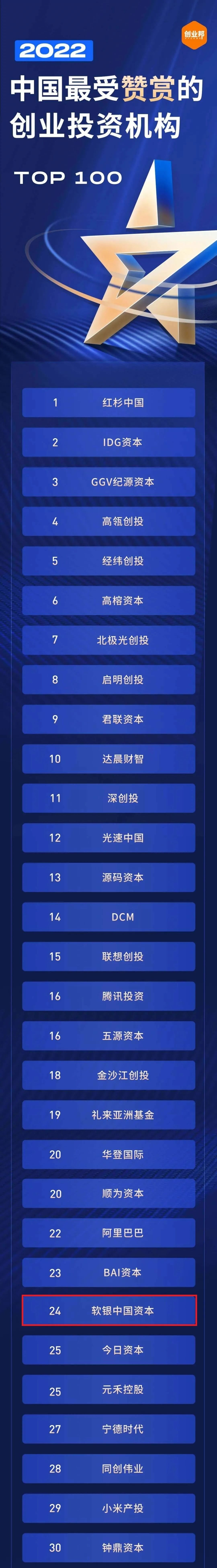 9月7日,创业邦于无锡正式揭晓“2022中国最受赞赏的风险投资机构”系列榜单。软银中国资本喜获“2022中国最受赞赏的创业投资机构 TOP30”殊荣。当晚同时揭晓的ESG最佳案例中,软银中国资本亦登上“2022中国创投机构ESG最佳实践”榜单。